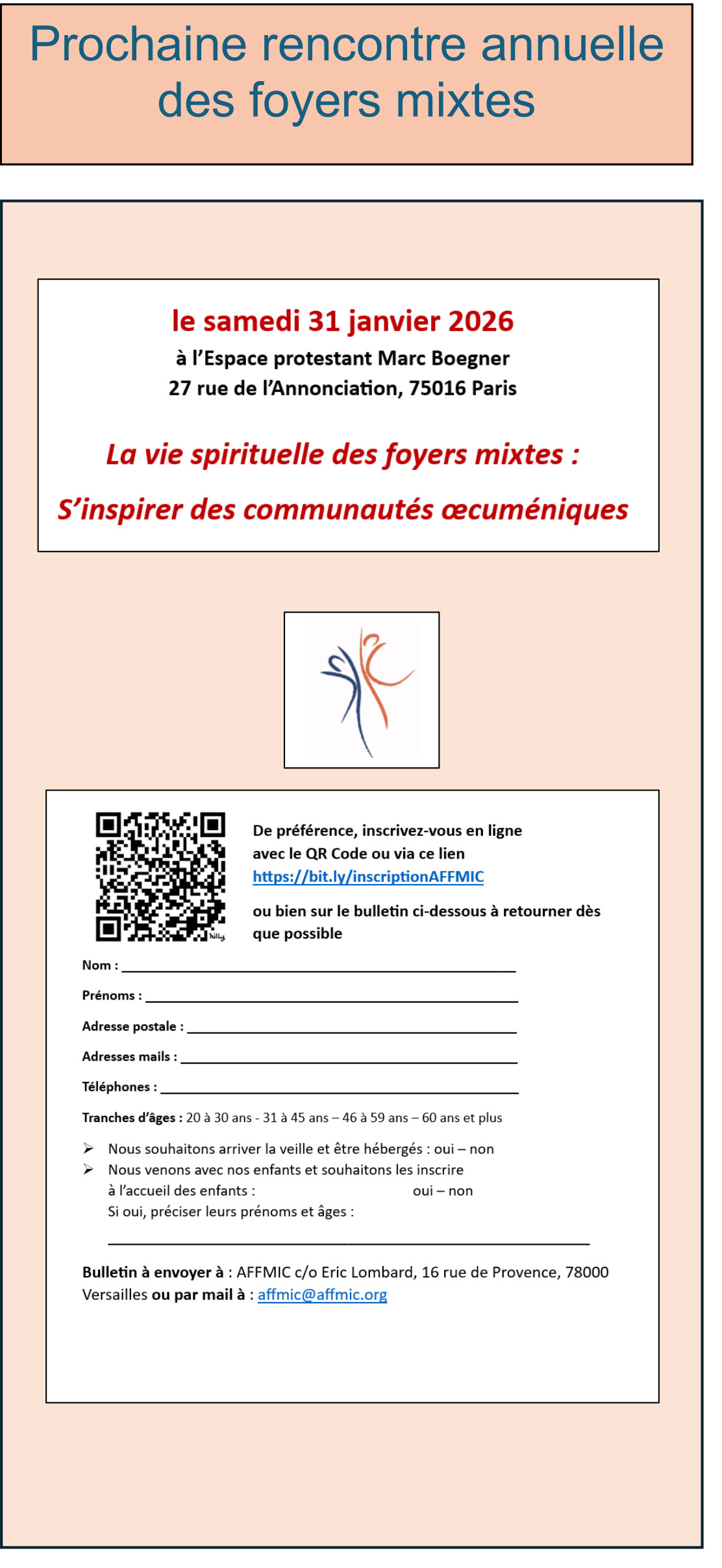 Organisé par l’AFFMIC – Association Française des Foyers Mixtes Interconfessionnels Chrétiens